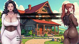 אמא חורגת ואישה במשחק 3D עם סאם מנשקות