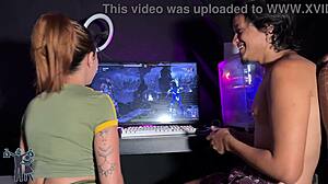 Brunette Milf Sucks Monster Cock While Gaming Strip Loser