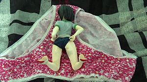 Guy blasts cum all over anime figure in tight leotard!