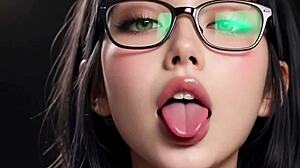 Krum milf tunge smager fed pik close-up i femdom 3D