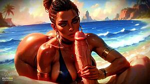 Shemale με τεράστια πούτσα χύνει καβαλίστρα AI γεννημένο