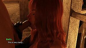 Ruby strips then slurps huge cock in Sex Kingdom 0 2D blowjob scene!