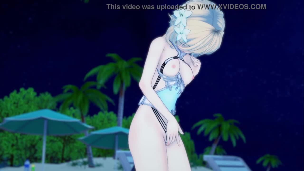 aqua from konosuba shares her water power with barbara in genshin impact hentai koikatsu